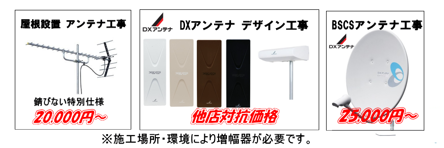 テレビアンテナ工事価格・費用 新築テレビアンテナ工事・取り付け テレビアンテナ取り付け・テレビアンテナ設置 テレビアンテナ修理・テレビアンテナ交換 テレビアンテナ工事見積もり 無料